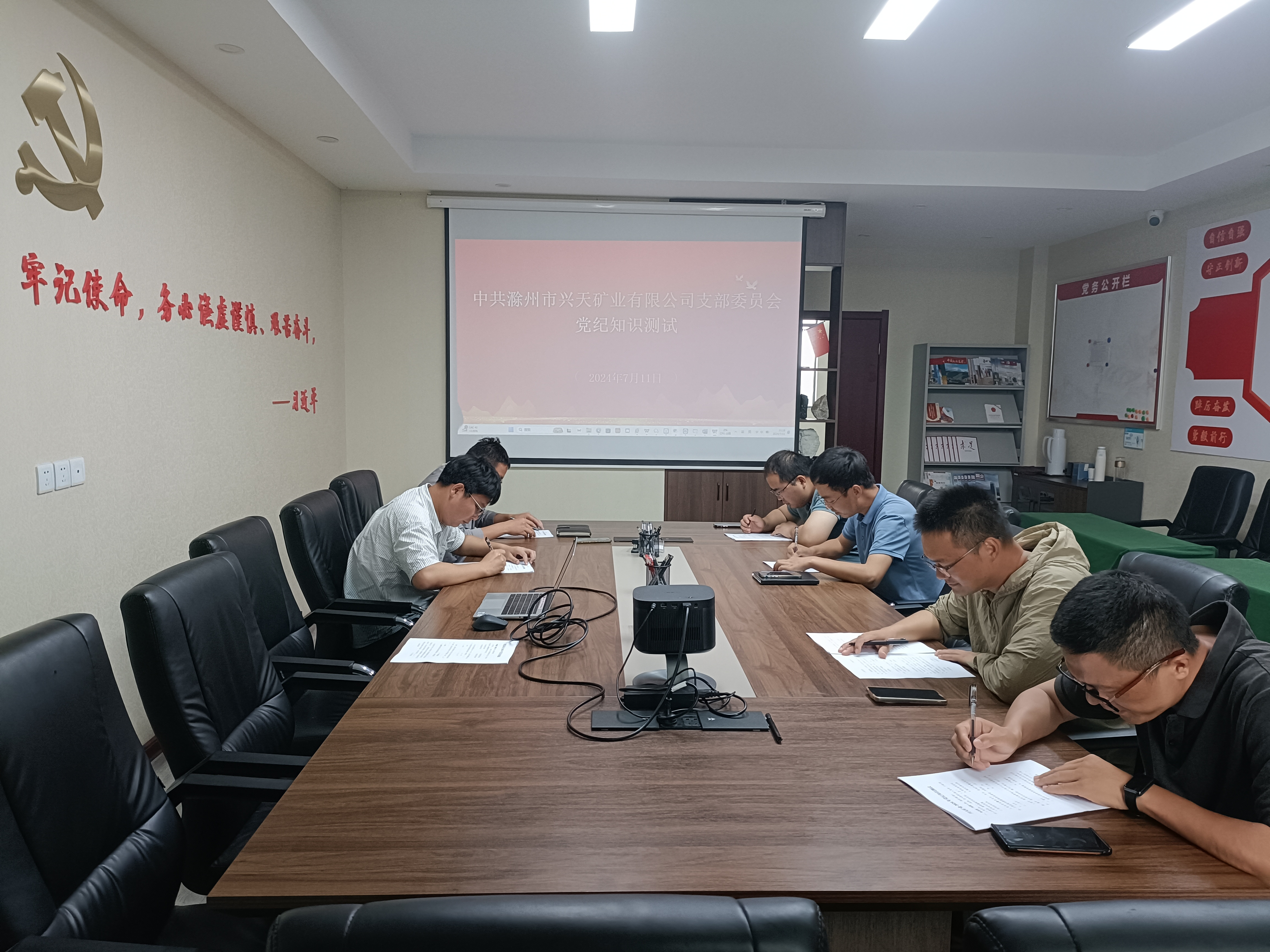 為推進黨紀學(xué)習(xí)教育走深走實,7月11日,興天礦業(yè)黨支部開展黨紀知識測試,全體黨員參加。