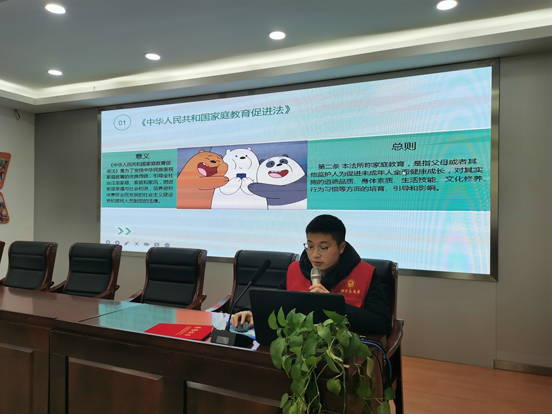 守護童年 相伴成長。舉辦《法律知識小課堂》普法講座,向社區(qū)未成年人宣講《中華人民共和國未成年人保護法》《中華人民共和國家庭教育促進法》,引導他們從小樹立法治觀念,增強法律意識,更好地成長成才。